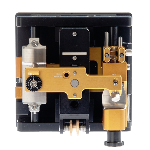 The tip profiler copies the 3 dimensional profile of the template to the reed. The position of the profile on the reed is adjustable in several ways so you can perfectly personalize the scrape to your own preferences. The tip profiler has an unique compact design and a hard cover which makes it easy to travel with it. You can automate the scraping process by connecting the tip profiler to the automatic drive.