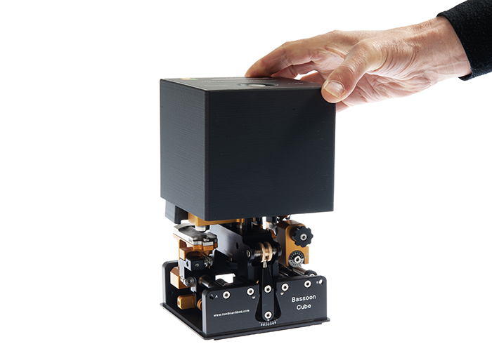 You can adjust the position of the profile in the length direction of the reed, the thickness of the tip, and the angle under which the profile is copied to reed. The adjustment of the angle of the profile is unique and gives you perfect control on the way your reed plays and sounds. The template can easily be changed for other types. We have multiple templates for bassoon, contra bassoon, contraforte and baroque bassoon.